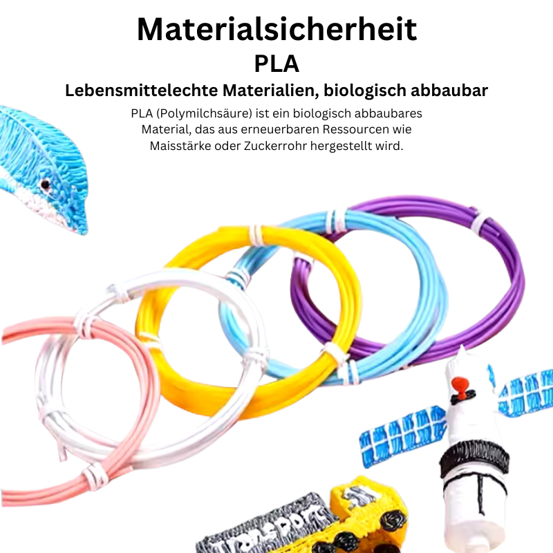 Da der Stift mit biologisch abbaubarem PLA-Filament arbeitet, ist er nicht nur kreativ, sondern auch nachhaltig. Das Material ist leicht erhältlich, umweltschonend und dennoch stabil genug für viele Projekte.