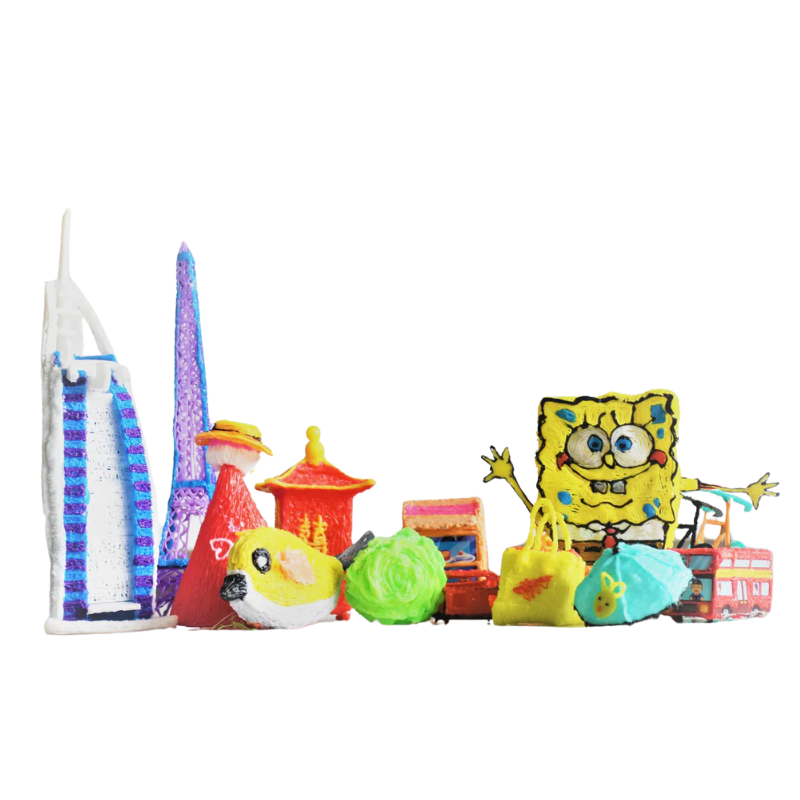 Kinder lernen mit dem 3D-Stift, ihre Ideen nicht nur flach auf Papier, sondern auch plastisch in die Höhe umzusetzen. Dadurch entwickeln sie spielerisch ein Gespür für Formen, Dimensionen und Proportionen. Ob Fantasiewesen, Fahrzeuge oder Schmuck – alles ist möglich!