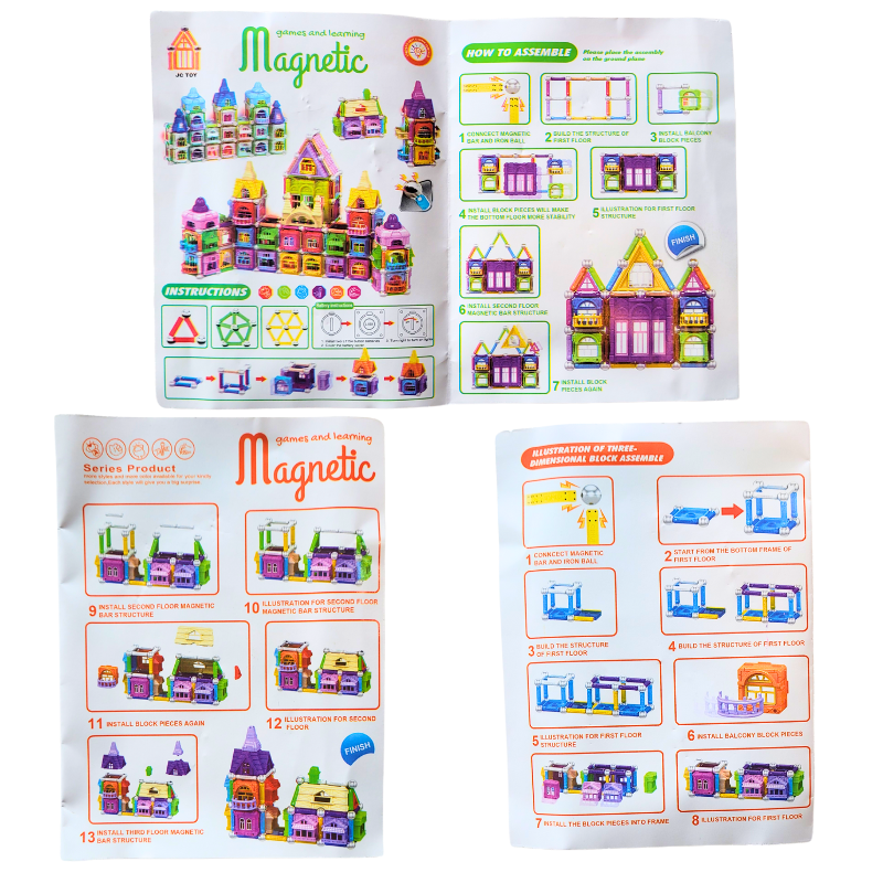 Die Magnetischen Bausteine sind aus hochwertigem, ungiftigem Kunststoff gefertigt, was für die Sicherheit Ihres Kindes sorgt. Die starken Magneten garantieren, dass die Teile fest zusammenhalten, ohne Gefahr von Lockerungen oder Bruch. So können Kinder sorglos bauen und spielen.