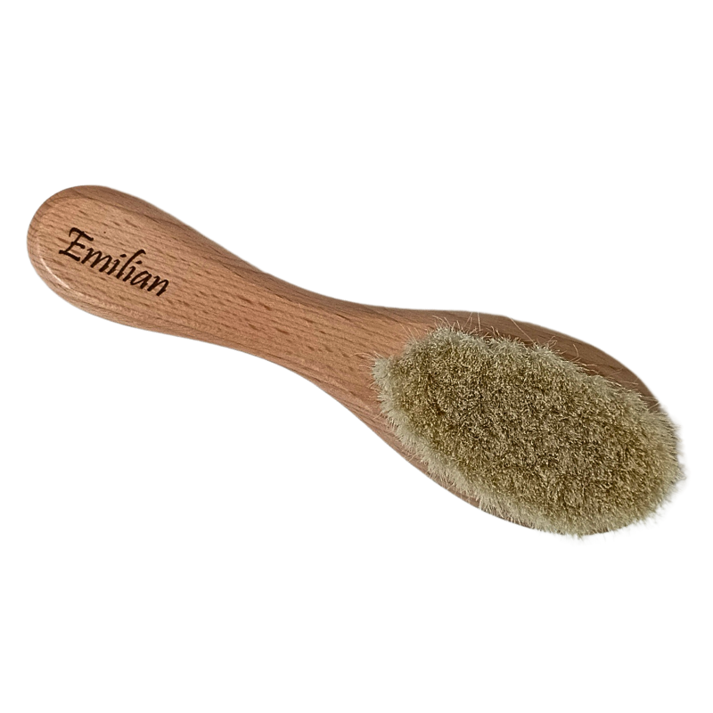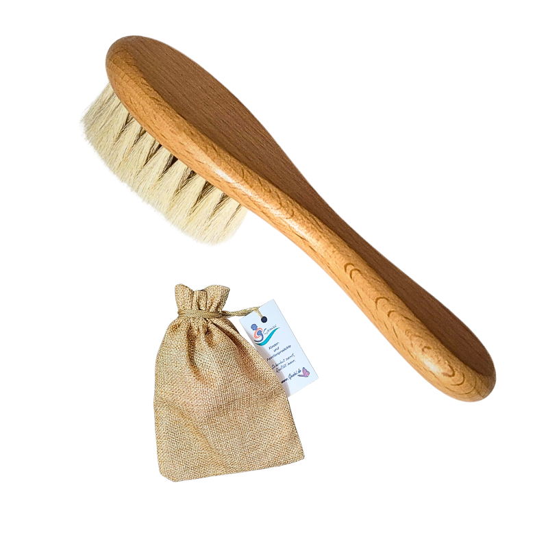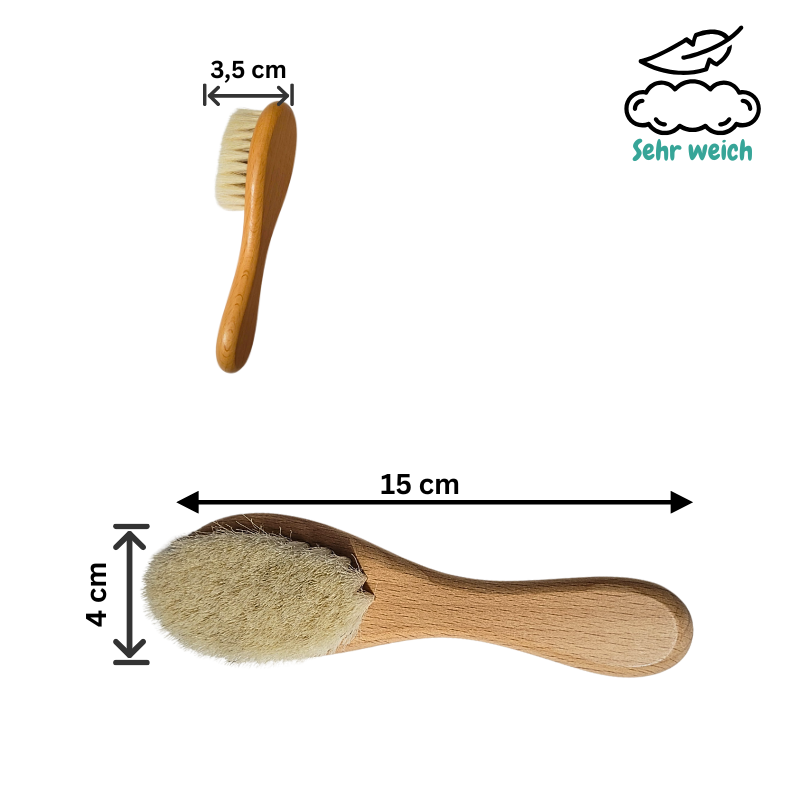 Verwöhnen Sie Ihr Baby mit der sanften Baby-Haarbürste aus Bio-Buchenholz! Diese liebevoll gestaltete Bürste wurde speziell für die empfindliche Kopfhaut von Neugeborenen und Kleinkindern entwickelt. Der Griff aus hochwertigem Bio-Buchenholz liegt angenehm in der Hand, während die weichen Ziegenhaare sanft durch das Babyhaar gleiten. So wird jedes Kämmen zu einem wohltuenden Erlebnis, das Ihr Kind entspannt und gleichzeitig die Bindung zwischen Ihnen stärkt.